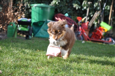 nun haben wir es geschafft, Ihnen ein paar Fotos von Cappa (und Smilla, der besten Freundin und Schwester!) zu schicken. Es sind nun schon 5 Monate, seit Cappa unser Leben völlig im Griff hat. Sie ist unser großer Sonnenschein und macht uns jeden Tag auf ein Neues Glücklich. Ihr Instinkt, als Hütehund zu arbeiten, hat sie gleich beim ersten Tag am Pferd gezeigt, da sie sofort beginnt, die Hinterhand zu schubsen. Wir... Ganz liebe Grüße aus Bramsche Franziska und Maximilian Kotte mit Phillip, Anton und Cappa